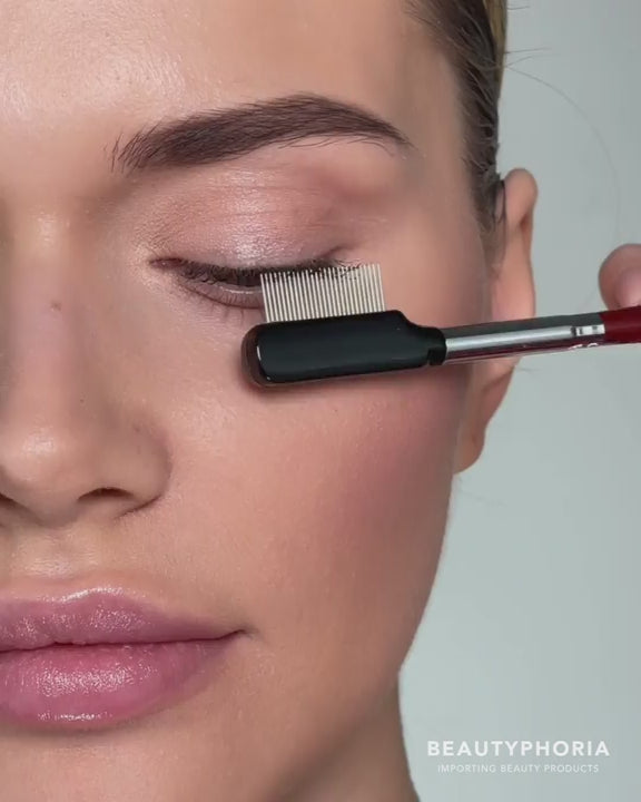 LM es un peine metálico profesional para pestañas, diseñado para separar las pestañas y eliminar el exceso de rímel tras su aplicación. Ayuda a lograr una definición impecable, evita la formación de grumos y perfecciona el look final con precisión.